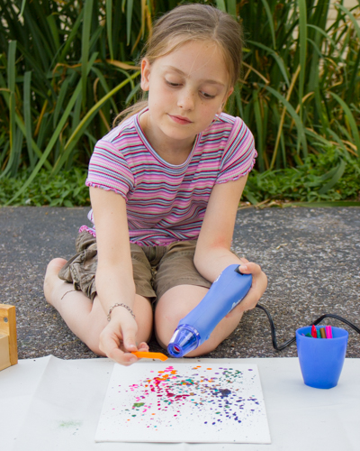 - Hair dryer or heat gun. A hair dryer will keep the temperature lower for little fingers, but a heat gun, found in a scrapbooking store, may be a better tool for an older kid who’s likely to get really into their work.