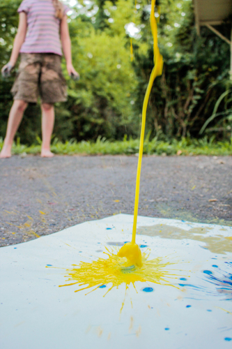 - Large-format paper. The paint will wash off, so you can do this project right on your driveway, but the splashes that the launching rockets make are pretty enough to keep.