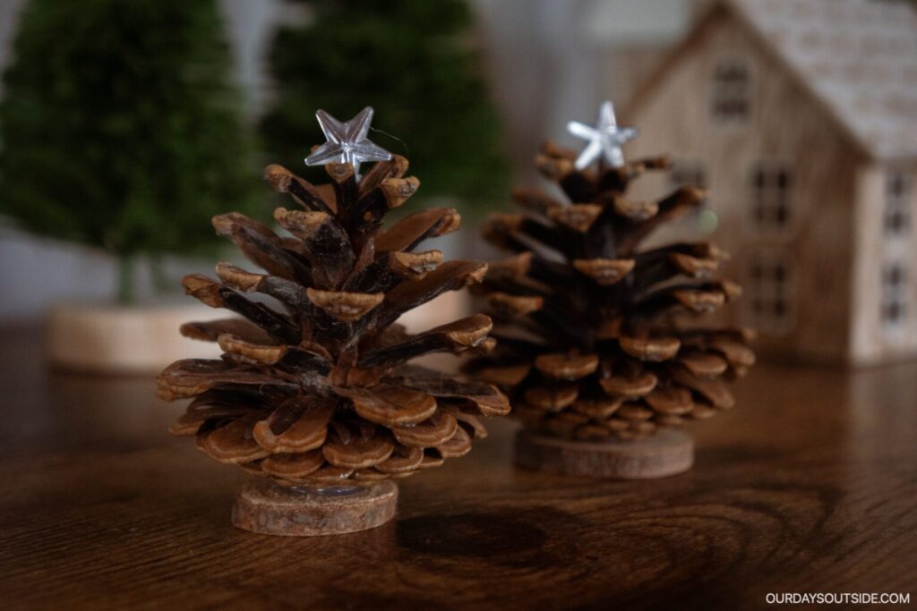 A great excuse to gather some pinecones on your next hike, these adorable mini trees can add some natural beauty to your holiday decor display.