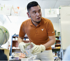Since then, he has become an invaluable resource, not only as someone intimately familiar with the school community, but also as a teacher of math and science in both English and Spanish at the dual-language immersion program at his school.