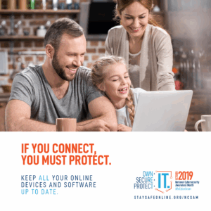 October is National Cybersecurity Awareness Month—a collaborative effort to raise awareness and provide education on ways to be safer online at work, at home, at school and all the places in between.