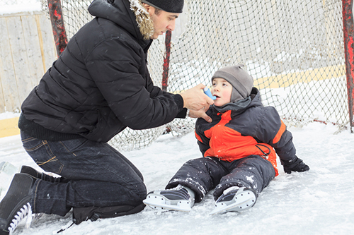 Encourage your child to breathe through their nose, not your mouth. This will help in cold air be because the nose warms up the air for the lungs. Also, dress your child appropriately for outside play. Have them wear water repellent clothes for playing in the snow and a scarf or ski/face mask to help warm and humidify the air they breathe.