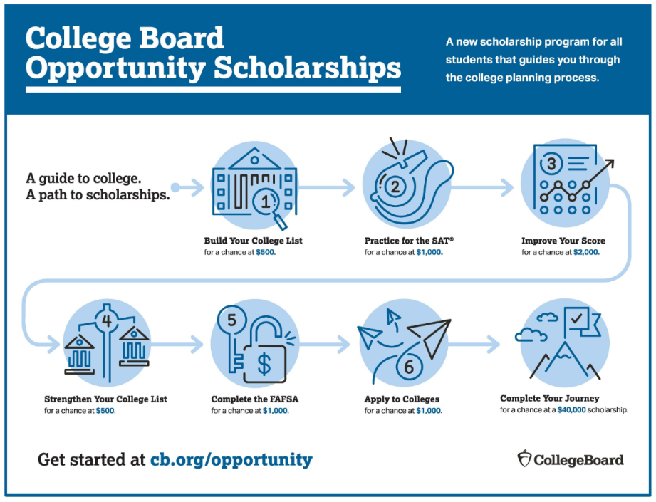 The College Board Opportunity Scholarships program guides students through the college planning process and gives them a chance to earn money for college along the way.